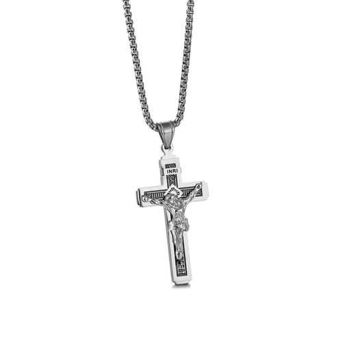 Colar de cruz prateado(Embalagem da caixa de presente)